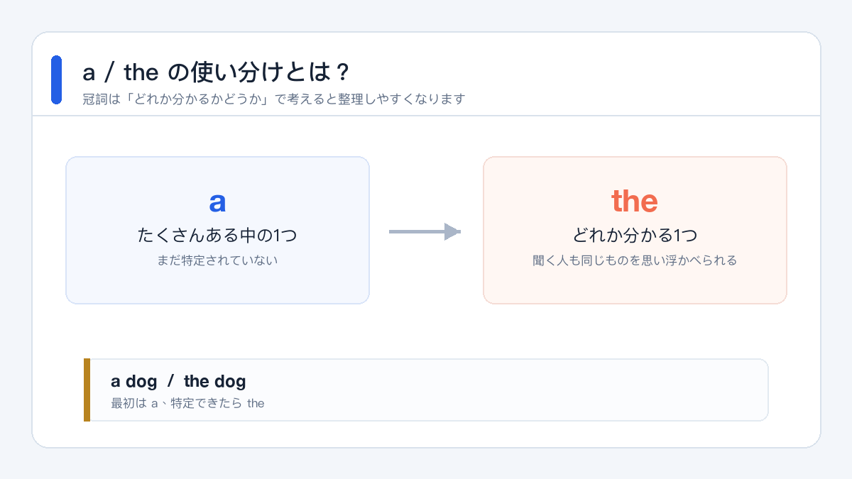 a と the は、細かいルールを全部覚える前に、まずイメージをつかめばかなりわかりやすくなります。