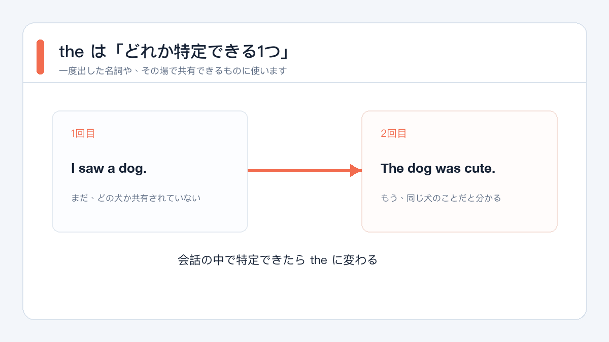 ここが見えると、a / the の使い分け がかなり整理されます。