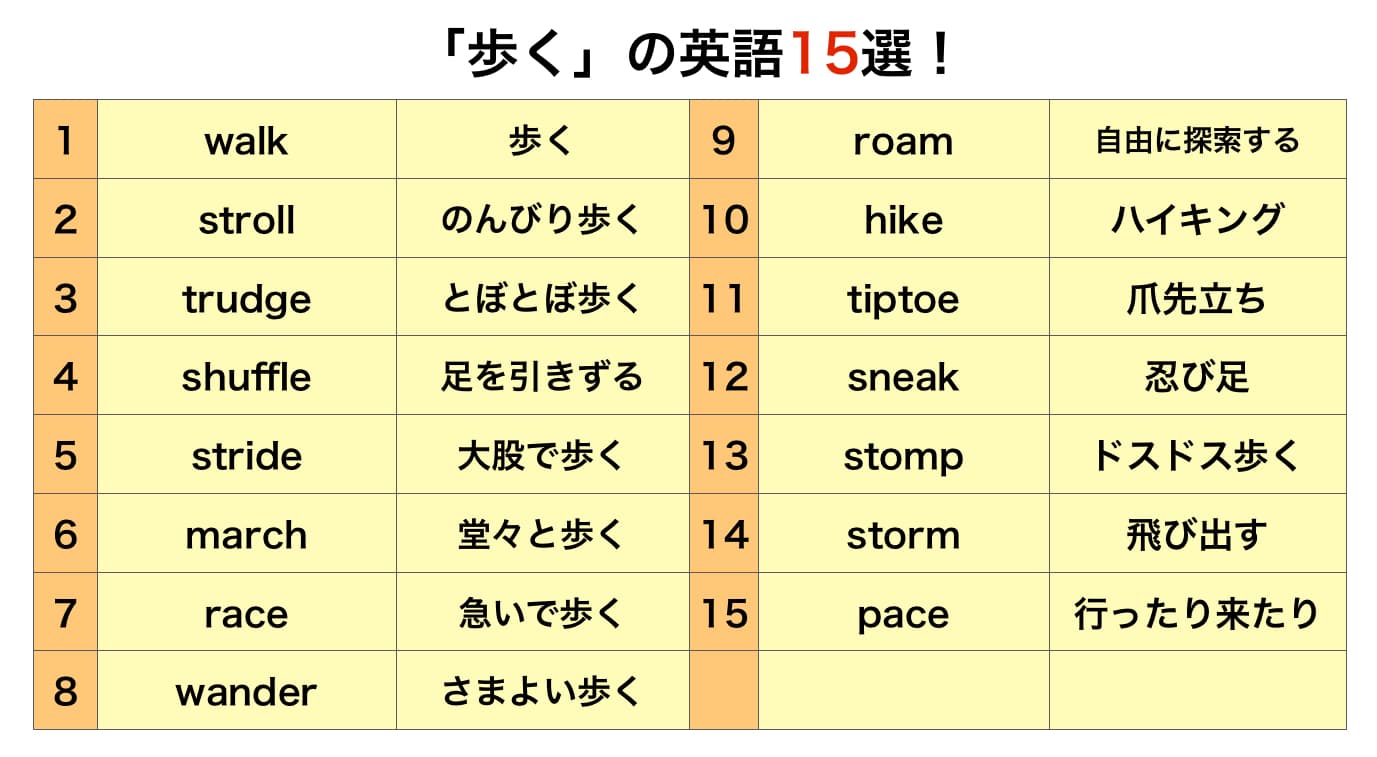 同じ「歩く」でも、全くニュアンスの違う単語が存在することがわかったかと思います。